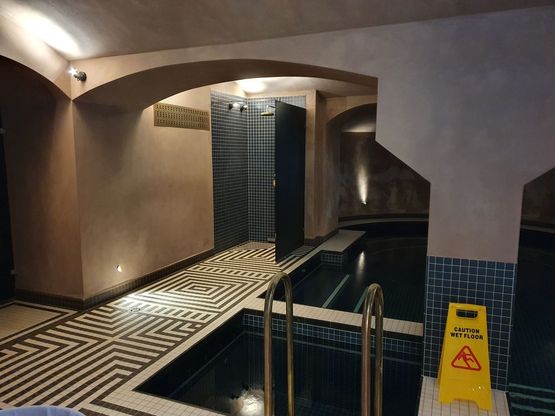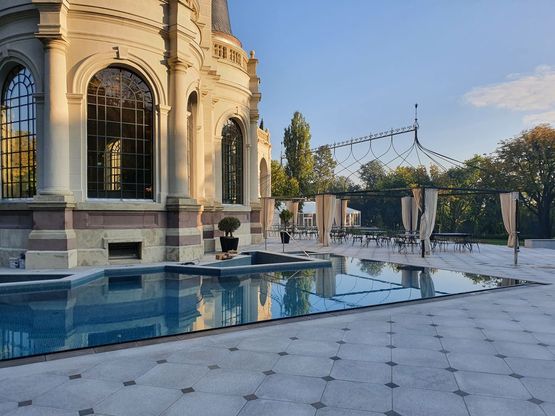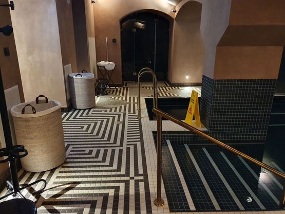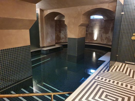 „A medencék burkolati munkáit szintén a Mapei termékeivel készítették 180 m2-en. A Stukkó Kft. megbízásából a Zorál Építőipari és Szolgáltató Kft. szakemberei a kültéri medence, a beltéri kismedence, a gőzkabin, illetve a zuhanyzó burkolásához választották a Mapei-t.